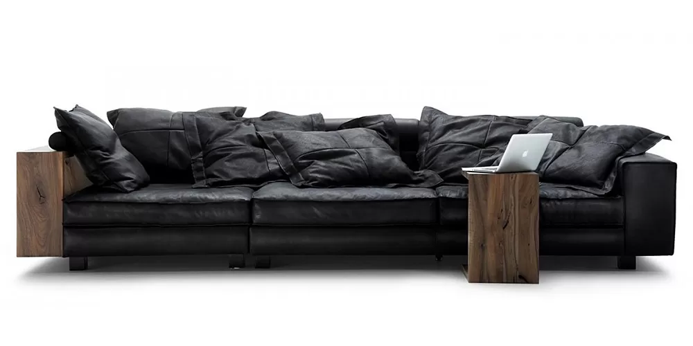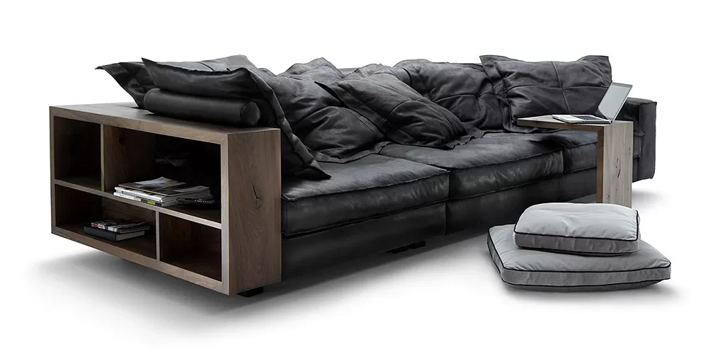 Καναπές Cardinal 4 θέσεων 320 cm με βιβλιοθήκη. Ξύλινο τραπέζι 40 cm