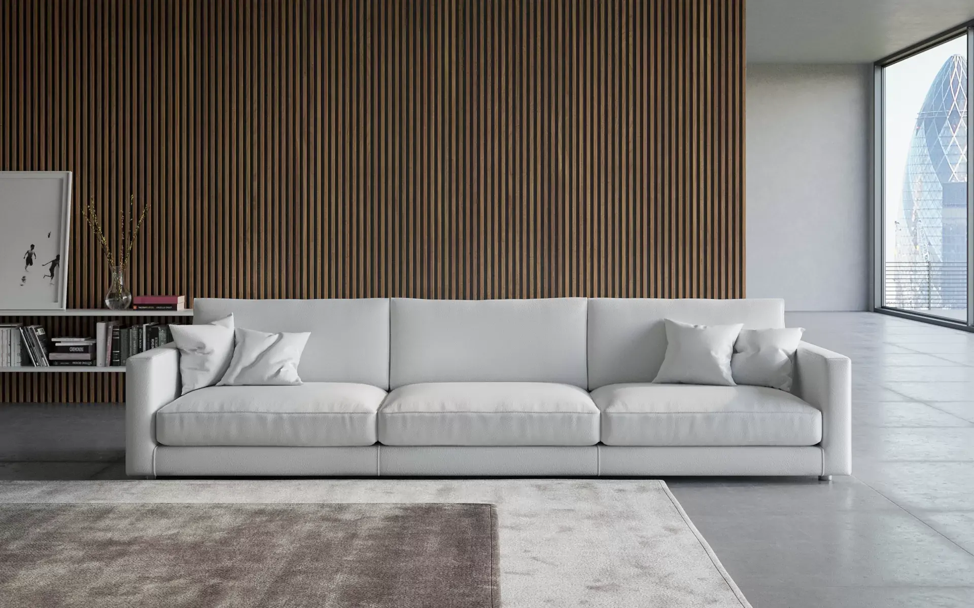 Ο καναπές Domenica είναι σχεδιασμένος να προσφέρει τη μέγιστη άνεση, με μαξιλάρια γεμάτα από αφρώδες συνθετικό ελαστικό. Τα μη ορατά πόδια του δίνουν την εντύπωση ότι αιωρείται, προσφέροντας μια κομψή και μοντέρνα αίσθηση στον χώρο. Είναι διαθέσιμος σε διάφορα μεγέθη για να ταιριάζει απόλυτα στις ανάγκες του χώρου σας.